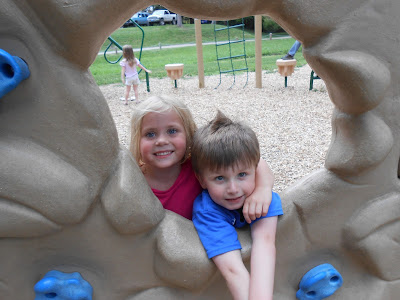 She asked to have a pinata. There was a perfect hanging spot on the end of the swing set, so Kevin rigged him up there.