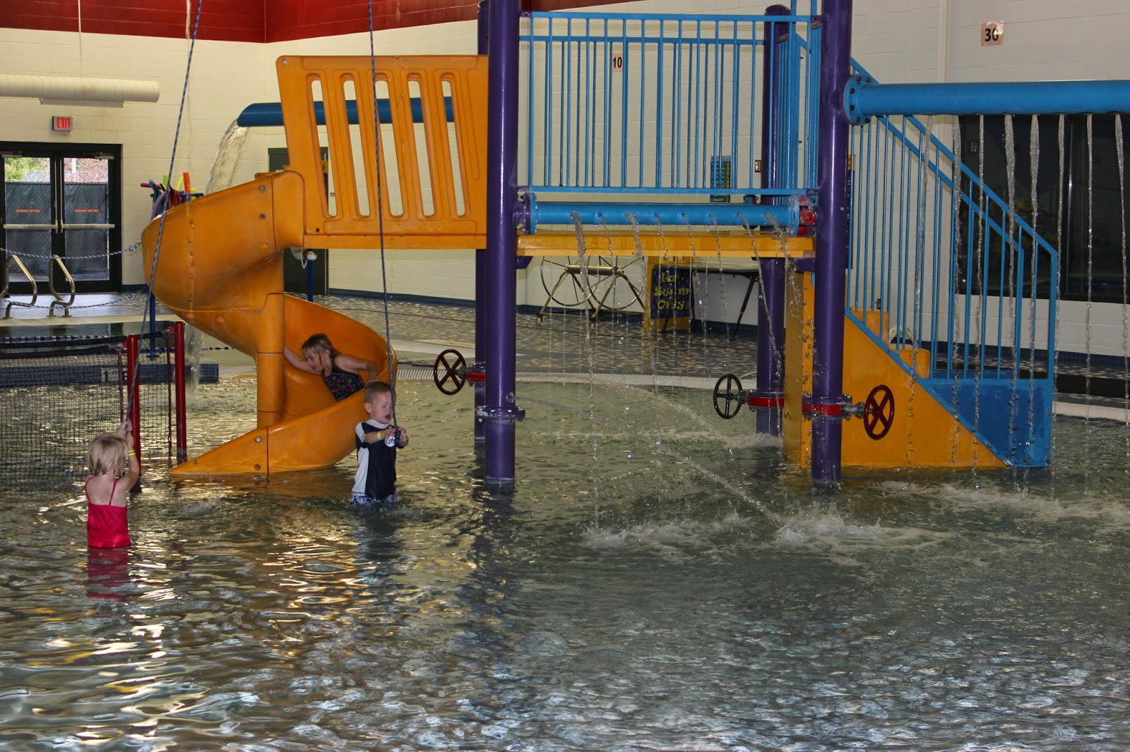 She was content to play on the small play structure, float in the small lazy river, and make whirlpools in the small circular section.