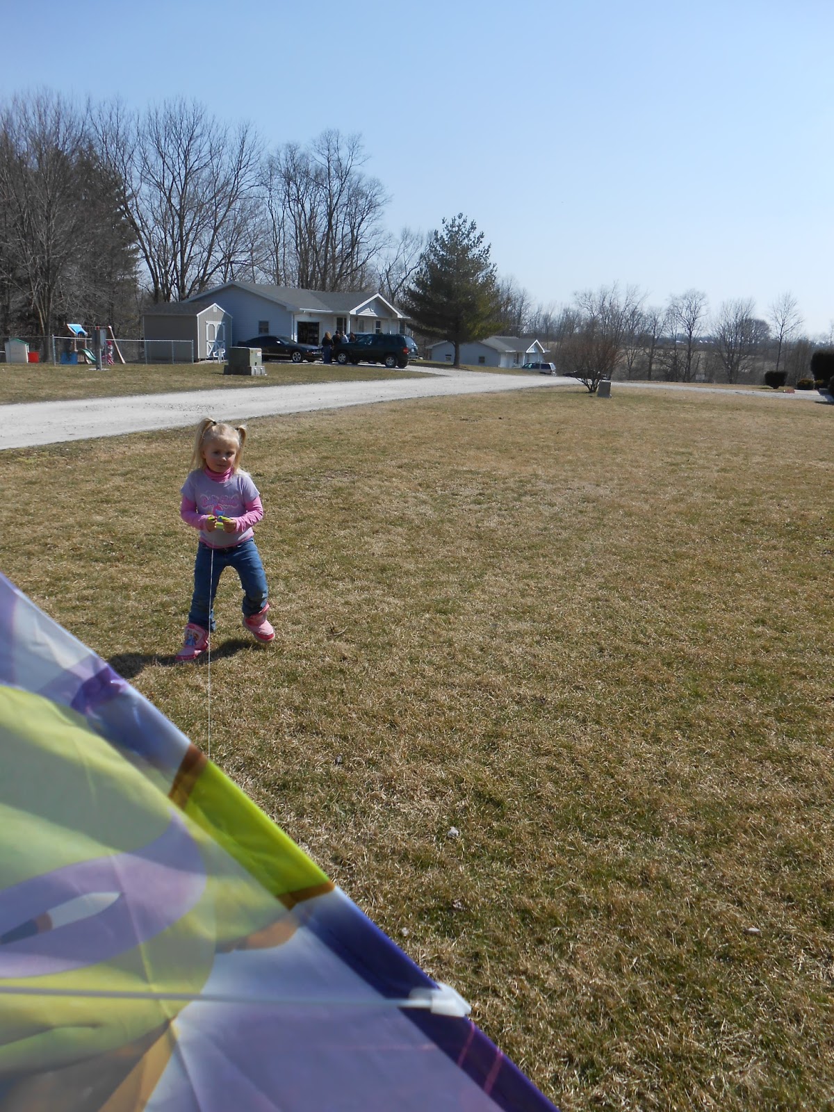 After a week of cold, un-Spring like temperatures, we were thrilled to have a nice Saturday. With snow in the forecast for Sunday, Camden and I spent ALL afternoon and evening outside. We played on her swing set (she pumps all on her own now...another "growing up" milestone), jumped on her bouncy ball, went to the school playground, and flew her new kite.